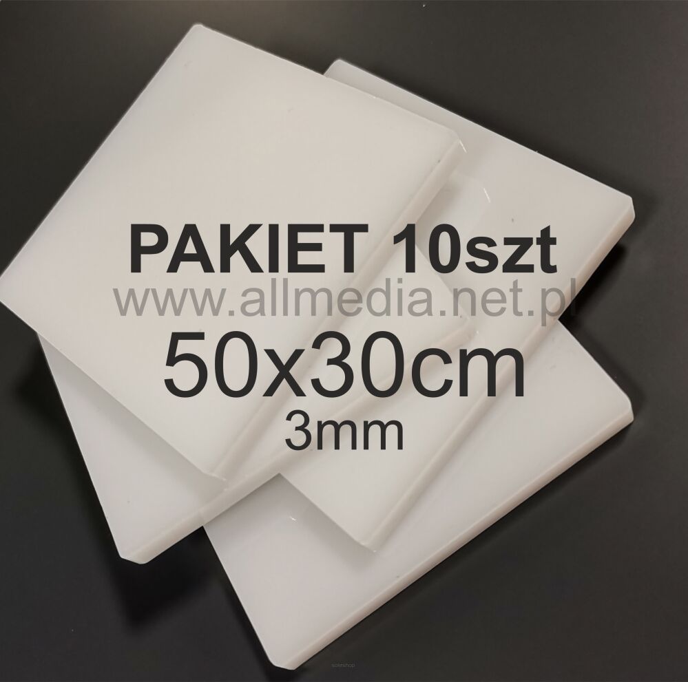 PAKIET 10szt Formatka plexi MLECZNA połysk 3mm 50x30cm
