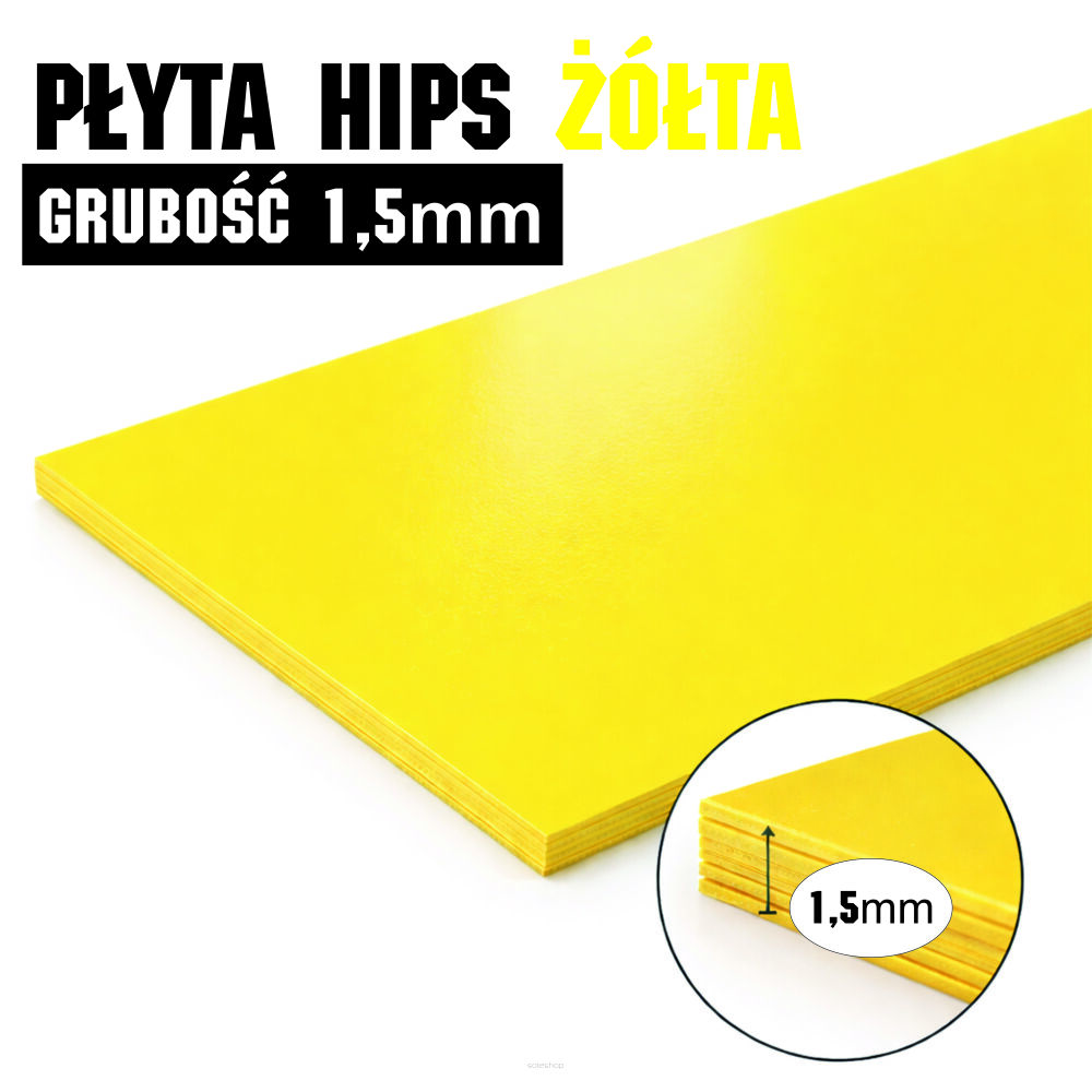 HIPS - (High Impact Polystyrene czyli polistyren wysokoudarowy) jest modyfikacją polistyrenu (PS) powstałą w wyniku dodania kauczuku butadienowego. Jest to materiał lekki (gęstość 1,06g/cm³), o wysokiej udarności, bardzo łatwo poddający się termoformowaniu i nie wymagający suszenia wstępnego. Dzięki temu możliwe jest tłoczenie nawet skomplikowanych form przestrzennych. HIPS nie jest tworzywem odpornym na szkodliwe działanie promieni UV zatem na zewnątrz może być stosowany wyłącznie przez krótki czas. Żywotność płyty w warunkach zewnętrznych można nieco wydłużyć zamawiając HIPS w wersji z dodatkiem stabilizatora UV ale zasadniczo HIPS zalecany jest do aplikacji wewnętrznych. Doskonale sprawdza się w branży przemysłowej i reklamowej.