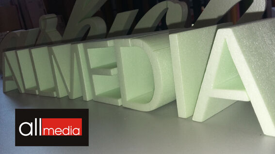 Jednym z urządzeń naszego parku maszynowego jest ploter termiczny, który pozwala wycinać bryły (znaków, liter) o wielkości maksymalnej 120x57cm, w materiałach poddających się obróbce termicznej, takich jak: styropian, styrodur (polistyren), pianka poliuretanowa itp.