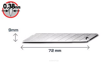 Grubość ostrza 0,38mm, długość krawędzi tnącej 72mm, 9 segmentów roboczych.
