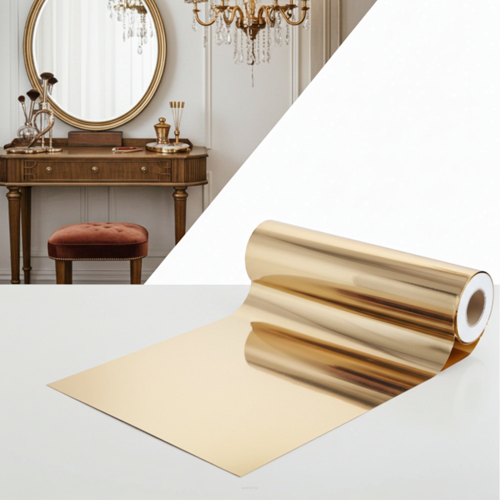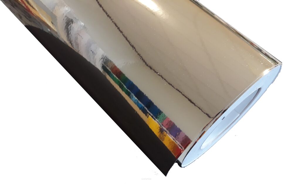 Poliestrowa folia metalizowana, złota połysk (chrom), grubość 23 mikrony.