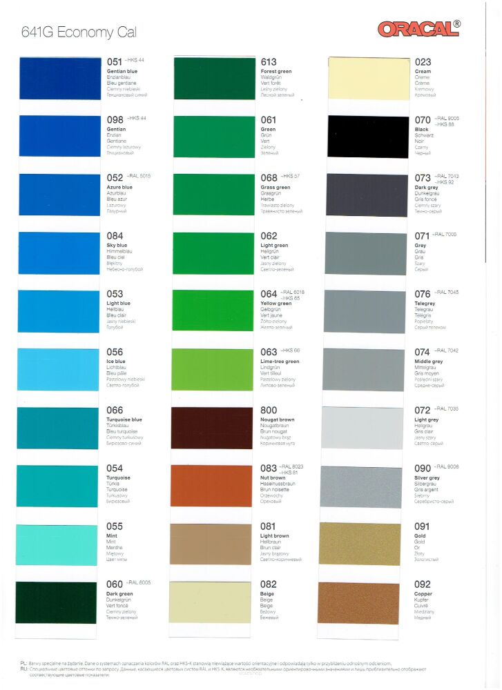WYBIERZ KOLOR oraz RODZAJ folii wg wzornika ORACAL 641.