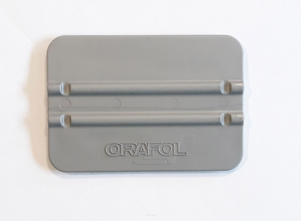 Plastikowa, srebrna rakla ORAFOL o szerokości 10 cm, przeznaczona do aplikacji folii samoprzylepnej.