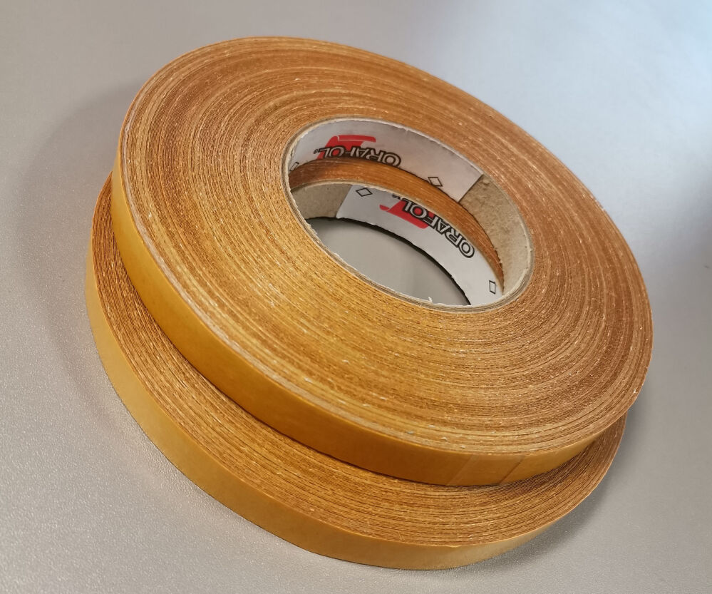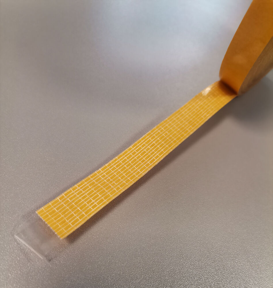 Taśma dwustronnie klejąca na siatce z włókna szklanego.