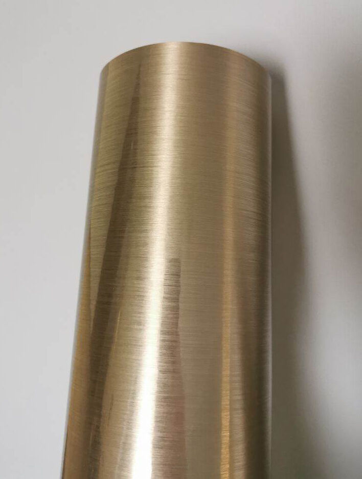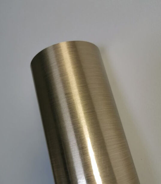 Fine Brush Champagne to gładka, metalizowana folia PVC w kolorze szampańskiego złota, charakteryzująca się delikatnie szczotkowaną powierzchnią. Dzięki trwałemu klejowi akrylowemu, folia zapewnia doskonałą przyczepność do różnych podłoży. Proces tłoczenia na gorąco nadaje jej głębszy i bardziej wyrazisty wzór. Warto zaznaczyć, że dekoracyjna seria folii metalizowanych wyróżnia się długotrwałym użytkowaniem wewnątrz pomieszczeń, a także ograniczoną trwałością na zewnątrz.