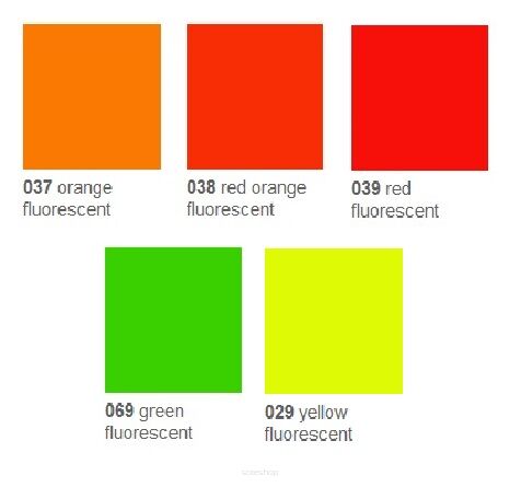 Folia fluorescencyjna wylewana charakteryzująca się jaskrawymi kolorami, stworzona do wykonywania bardzo widocznej reklamy na pojazdach lub etykietach, mająca przyciągać uwagę.