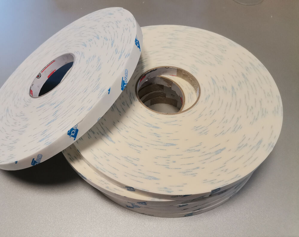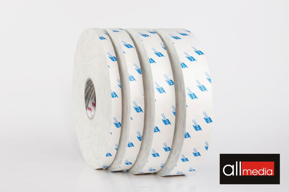 Taśma dwustronnie klejąca na bazie pianki PE o grubości 1mm.