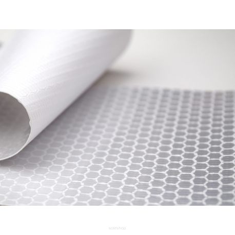 Odblaskowy, błyszczący baner PVC o strukturze plastra miodu.
