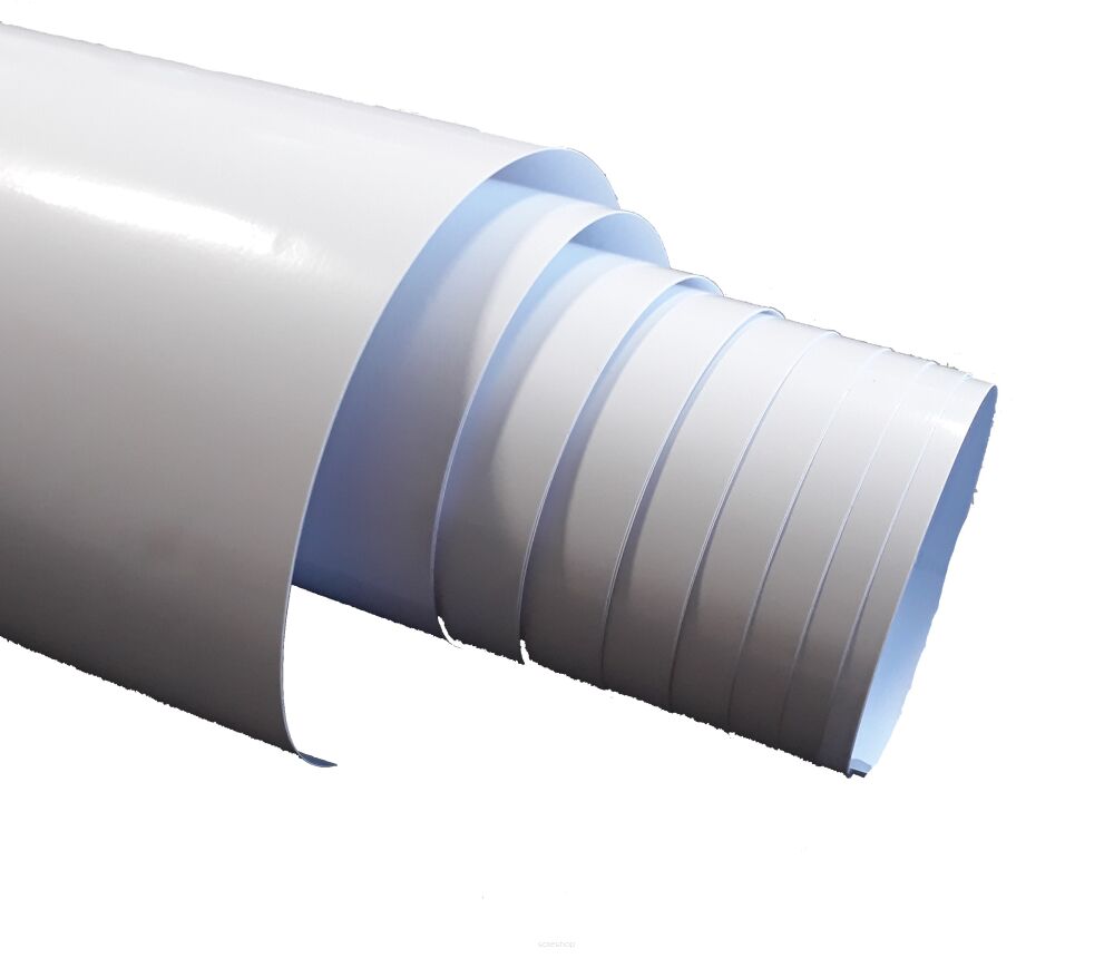 Folia tablicowa biała PET, samoprzylepna ALVAR WHITEBOARD. Dostępna w szer. 122cm lub 150cm, powierzchnia połysk. Ilość 1mb.