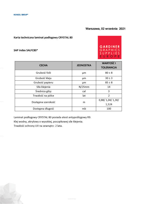 Laminat podłogowy, antypoślizgowy do zabezpieczania grafiki reklamowej na podłogach w galeriach, restauracjach, hotelach itp. Specjalna, przezroczysta folia PCV, klasa antypoślizgowości R9.