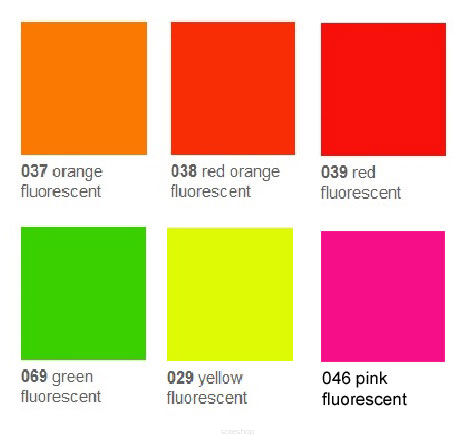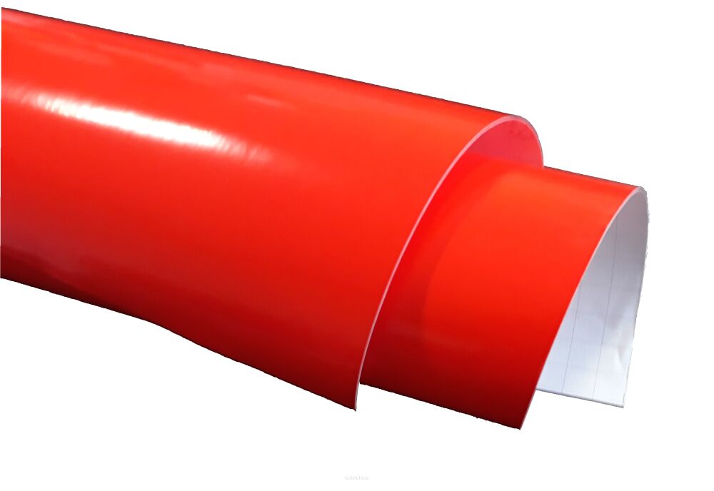 Folia fluorescencyjna wylewana charakteryzująca się jaskrawymi kolorami, stworzona do wykonywania bardzo widocznej reklamy na pojazdach lub etykietach, mająca przyciągać uwagę.