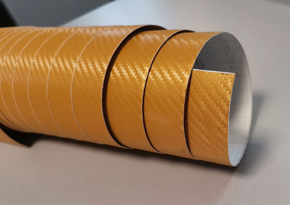 Wielowarstwowa, wylewana folia PCV o grubości 150 mikronów, o charakterystycznej strukturalnej powierzchni przeznaczona do oklejania elementów pojazdów.