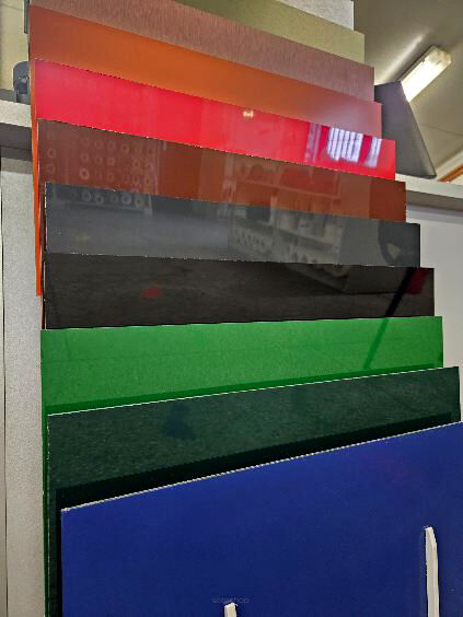 Aluminiowe płyty kompozytowe z wypełnieniem polietylenowym.