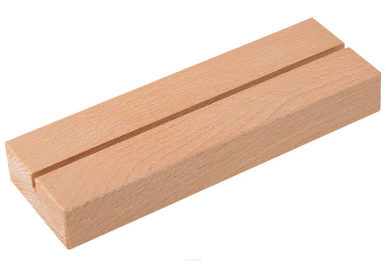 Drewniany stojak pod kartę menu, broszurę, plexi. Dla formatek między innymi A5. Podstawka wykonana z litego drewna bukowego.