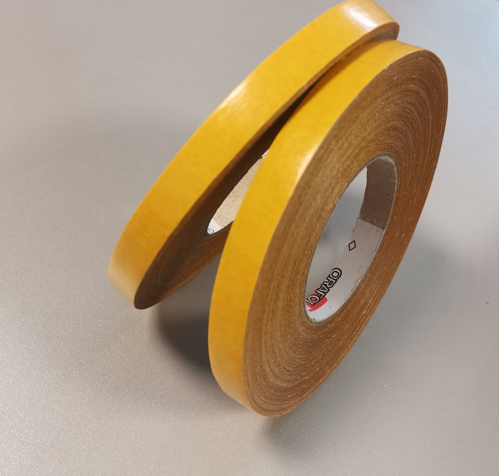 Taśma dwustronnie klejąca na siatce z włókna szklanego.