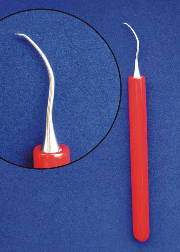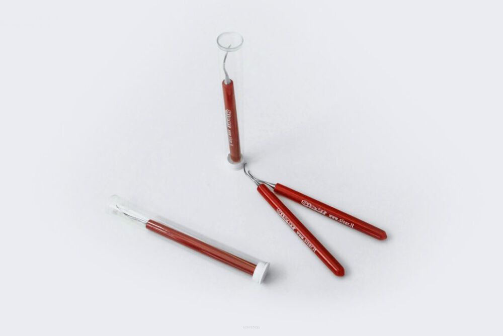Zakończony metalową, haczykowatą końcówką, ułatwia wybieranie zbędnych fragmentów folii (do folii flex, flock i samoprzylepnych).